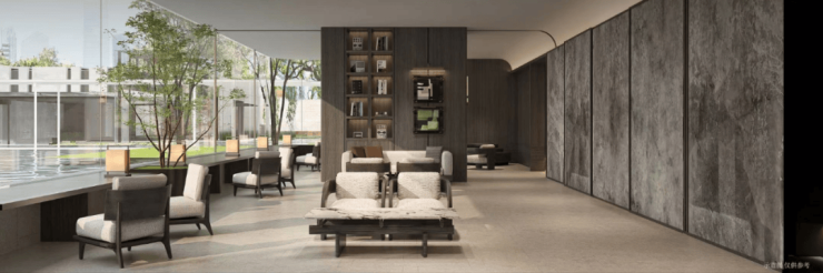 5、项目规划有地上地下双会所,地下会所包含7个茶室、泳池、健身房、理疗室等,还有约1500㎡架空层泛会所。架空层是全封闭设计,增加了很多实用性的设施,比如自助吧台、茶饮售卖机等,甚至还有卫生间。