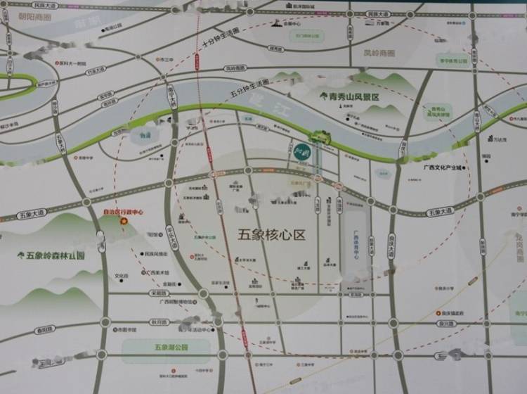 “沁园”项目位处五象核心——蟠龙区滨江居住区中心,飞龙路与博艺路交汇处,博艺路43号,北面靠博艺路,西为51号路,东临飞龙路40米宽景观带,南接五象大道,占据南宁新城优质宜居生态地段,北临邕江、观青秀山,山清水秀,舒适宜人,南面千亿级总部商务区,高级的商务配套举步即享,一江之隔便是青秀商务核心区,十分钟接驳东盟商圈,便捷无比,项目周边2公里范围布局了政府重点打造的“三街十场馆”大型休闲娱乐场所,高级城市配置,吃喝玩乐购一应俱全。