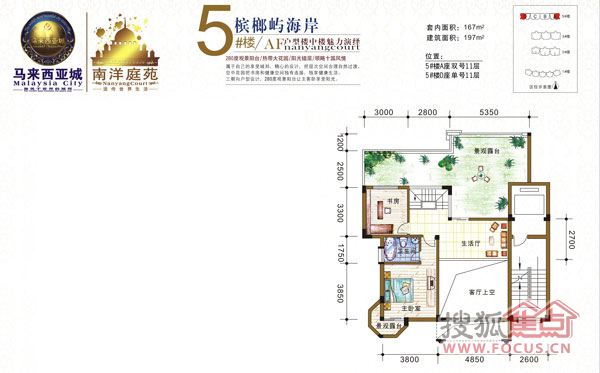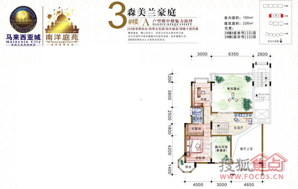 多重园林景观空间,风情街区-组团园林-空中花园。60米宽景视野,40%绿地,2000平方米大马风情园林景色,与绿色做邻居。热带植物美景、伊斯兰圆顶建筑,体现了大马岛国的人文风情。