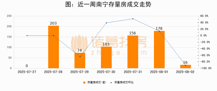 从存量房来看,2025年08月02日南宁存量房单日成交16套,比昨日减少162套,环比下降91%。从近一周存量房成交来看,南宁存量房日均成交套数为104套,08月02日单日成交16套,低于近一周平均水平84.6%。