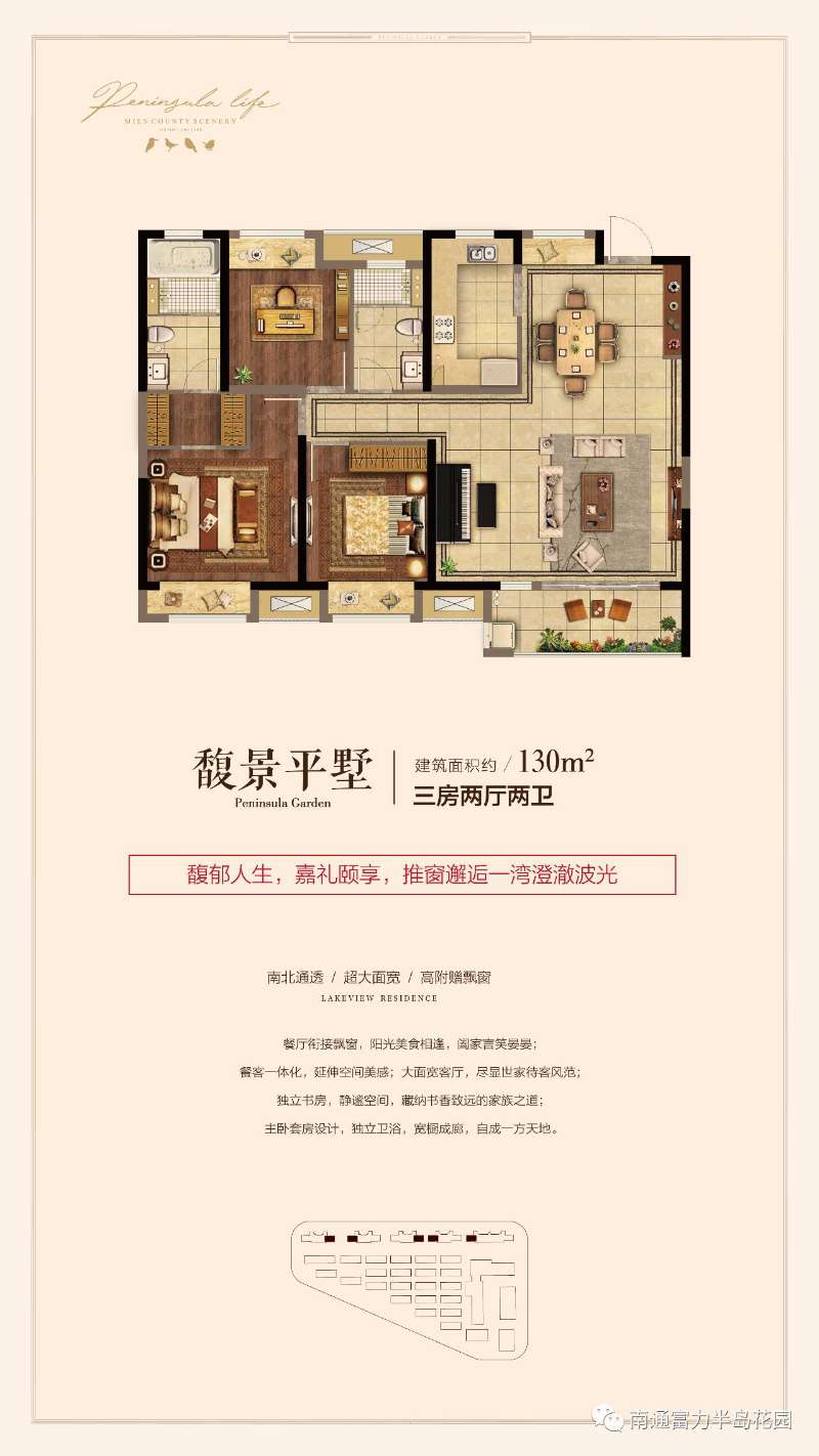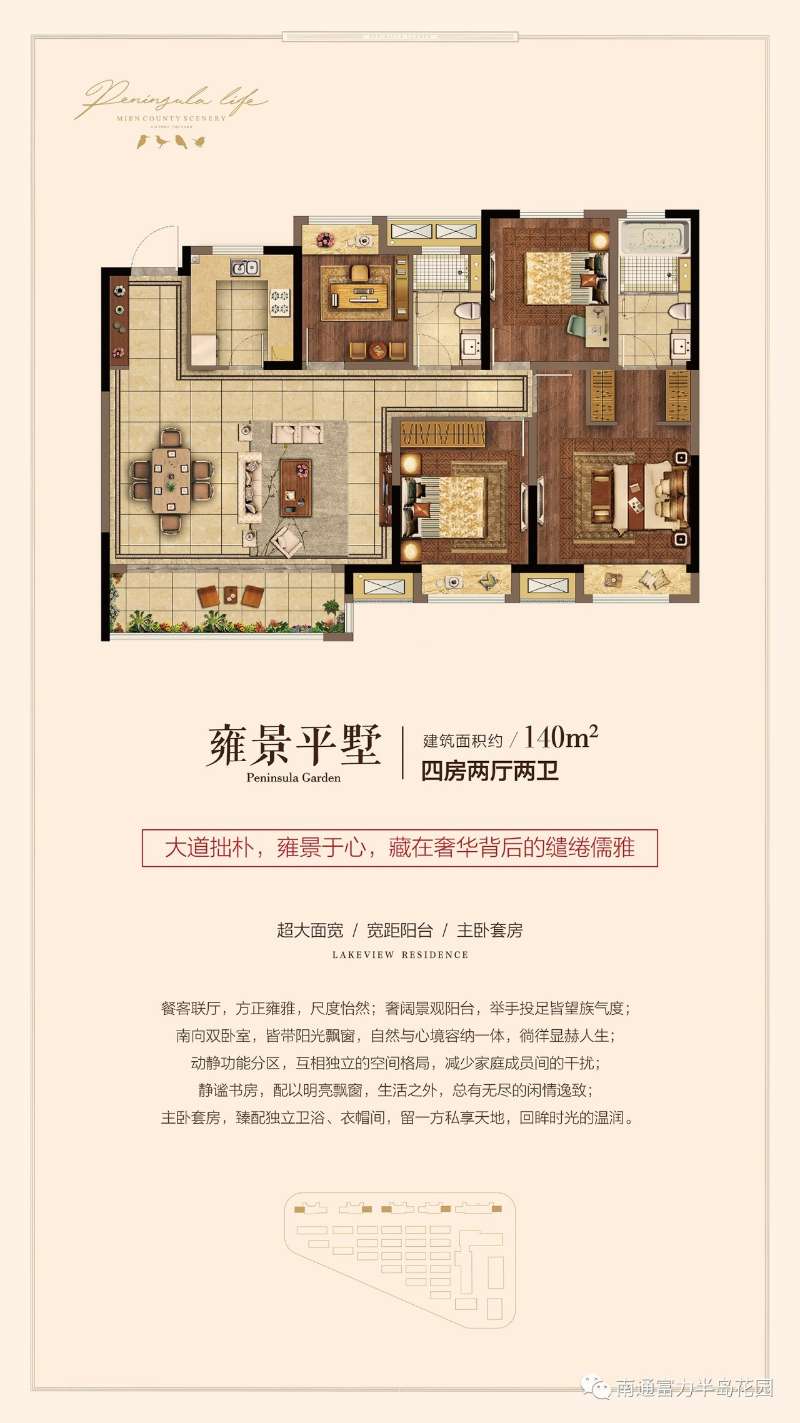 富力·半岛花园位于开发区东锡通科技产业园核心区,双公园环绕,三面临水,是南通难得一见的水岸诗意岛居。临近东方大道高架、沈海高速及未来的地铁2号线、4号线;6公里辐射圈内有德力新天地、星湖101、世茂广场、永旺等繁华商圈;项目以富力品质为根基,以新亚洲建筑为风格,依托水脉风光,将打造成豪宅名片式的半岛雅境 。