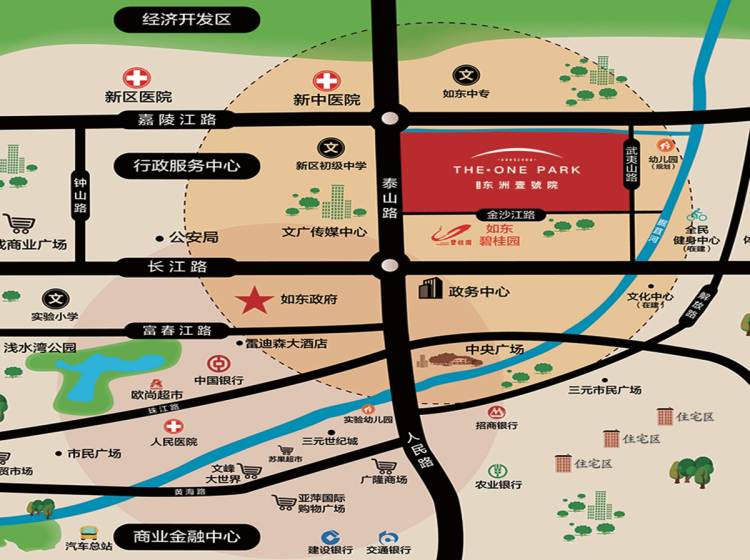 项目西侧紧邻城市主干道泰山路,周边路网密集,珠江路、江海路等几条道路都直通县中心,出行非常方便,往南您可以直接通过高速直达南通和上海,往北通过苴东线距离在建的启扬高速入口,建成后可直达泰州和南京,而且通过苴东线前往栟茶、岔河、马塘、丰利、洋口和长沙等乡镇也是十分便利。如果选择环保出行,小区门口的101、102 路公交车,途径文峰大世界,汽车站等。总体来说项目大交通顺畅、小交通便利,无论您是早出还是晚归都较为便利;