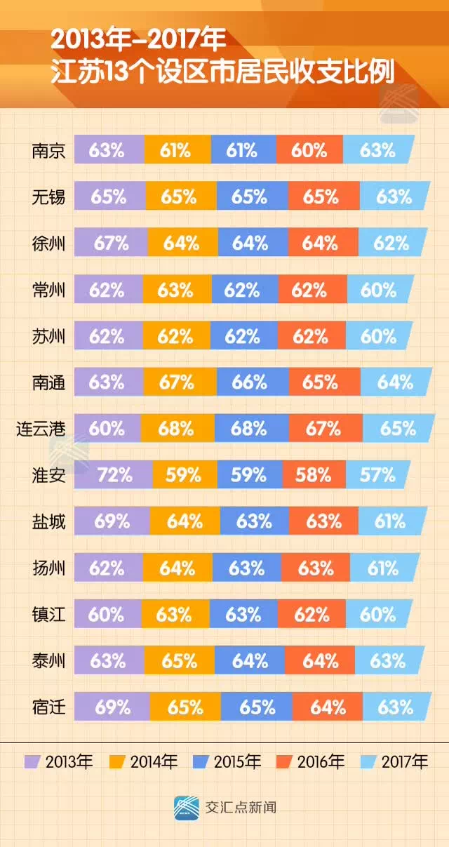 看点一:花钱的比例小了,江苏人更能“攒钱”了