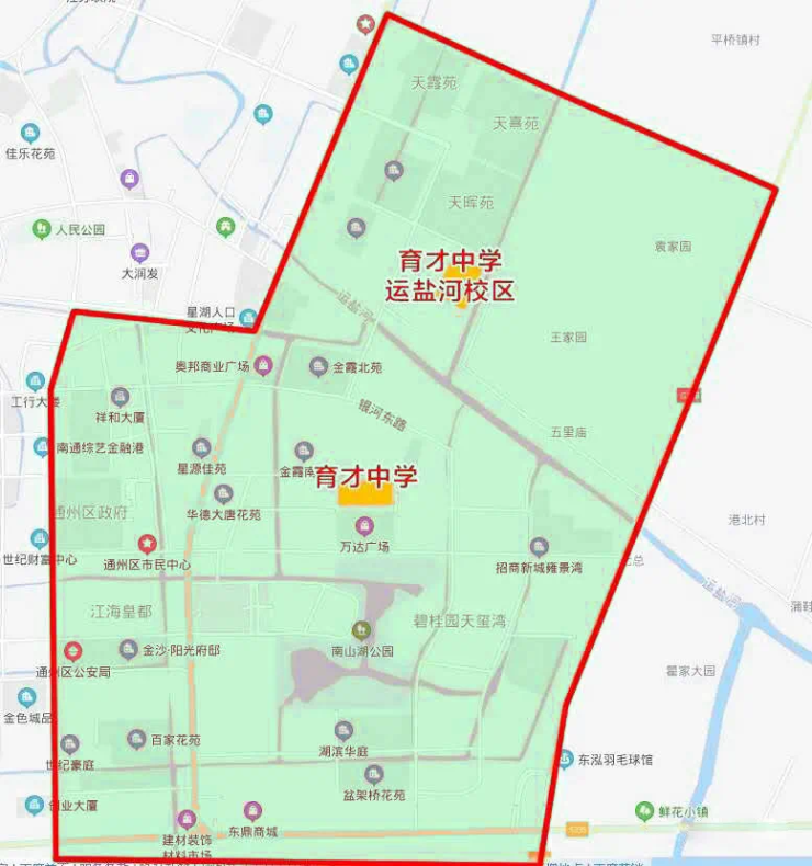 3.金郊初中:G345以东、运盐河以南、新世纪大道→交通路以西、通吕运河以北片区以及原张謇学校施教区。