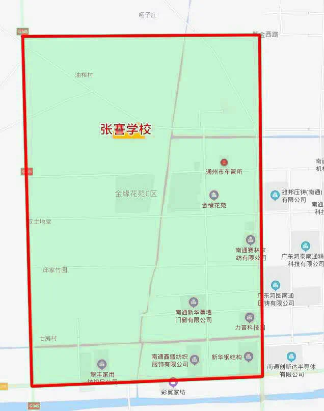 8.张謇学校:G345以东、新金西路以南、金江路以西、通吕运河以北片区。
