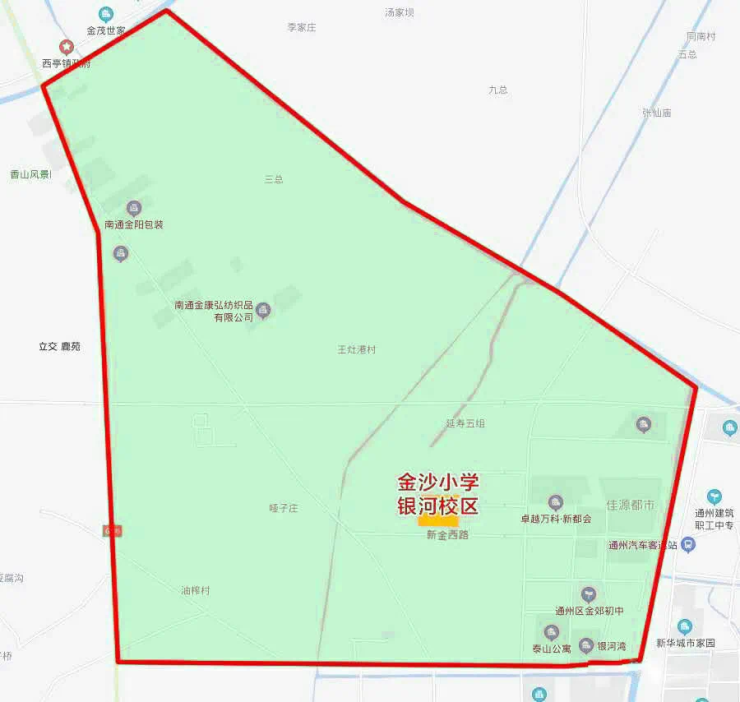 5.南通高新区小学:金江路以东、银河路→竖石河→朝霞路以南、金霞路以西、通吕运河以北片区。