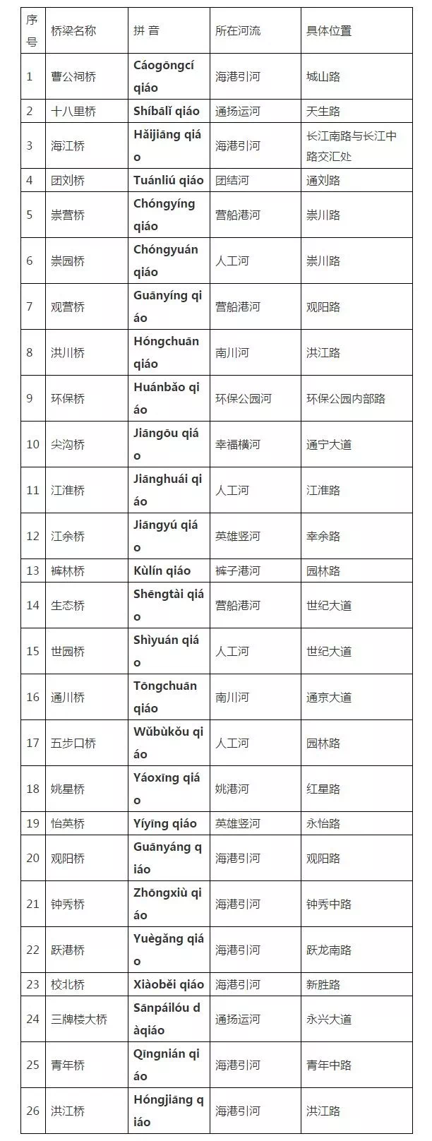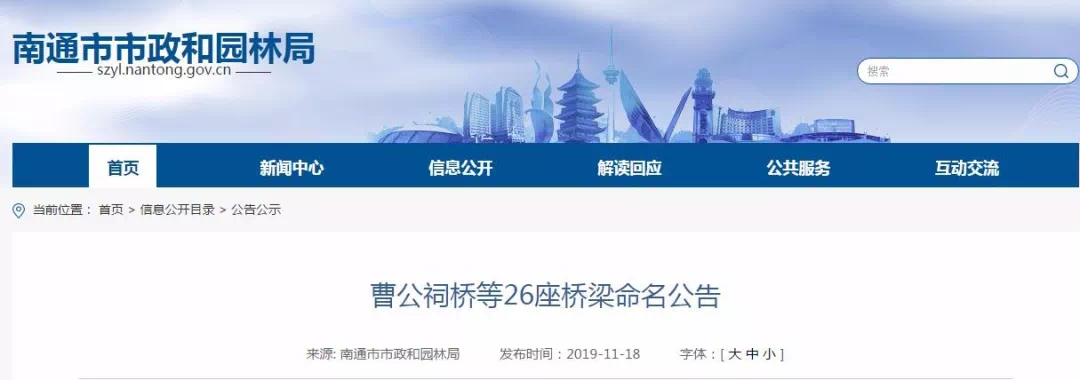 根据《江苏省地名管理条例》及市有关规定,经我局批准,报南通市民政局备案,同意对曹公祠桥等26座桥梁予以命名,现予以公告。