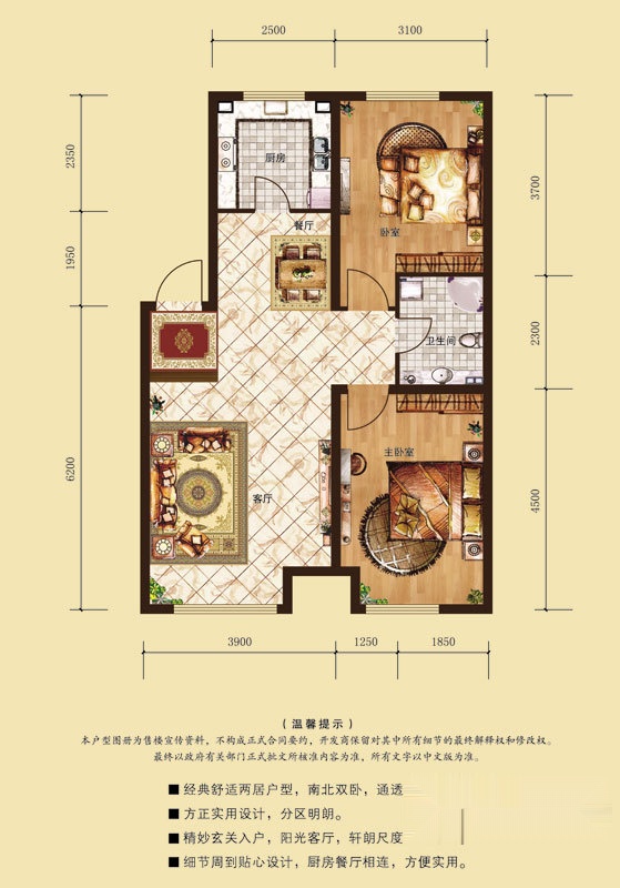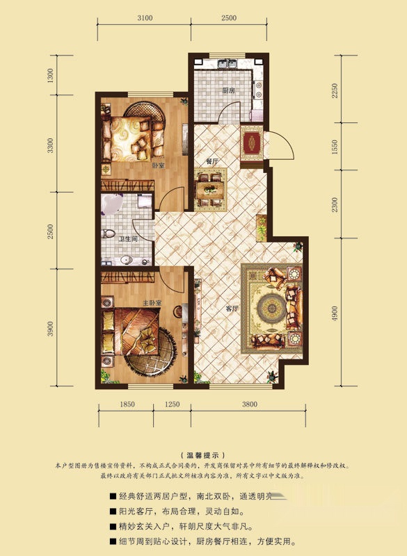 2室2厅1卫-户型单页D1净尺寸(180X285mm)