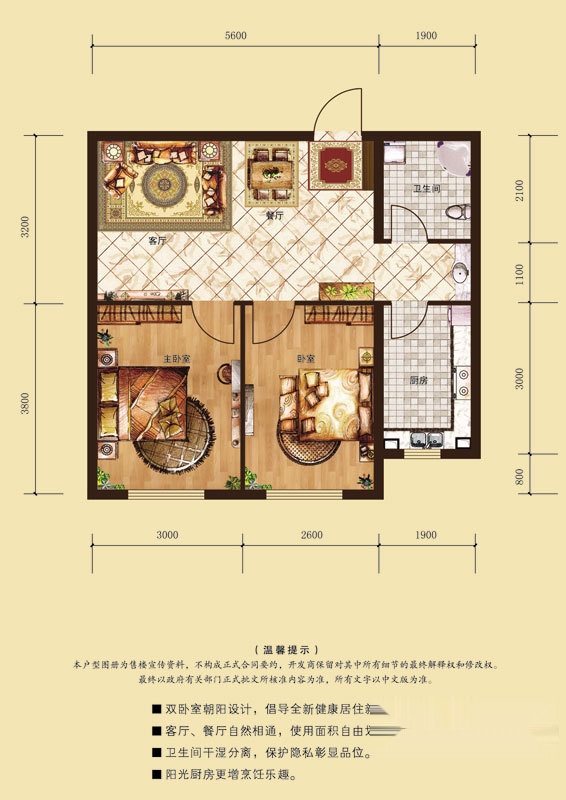 2室2厅1卫-户型单页G3净尺寸(180X285mm)