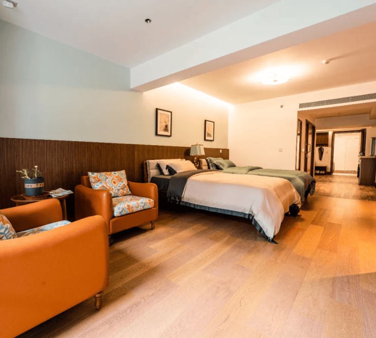 公寓位于国家 5A 级翠湖湿地园区内,占地 60 亩,由 13 套中式庭院组成,共 360 余张床位。房间类型包括双人标间、大床房、单人间、大小套房及独栋别墅,配套大型接待中心、娱乐活动室、卡拉 OK、歌舞厅、宴会厅、书画院、老年大学等设施。内设医务室且医保可报销,作为国家级阿尔茨海默症试点项目,除基础养老服务外,还开设中医养生特色体系,包括经络养生、运动养生、体质养生、膳食养生等,并为每位长辈定制个性化养生方案。公寓引进多功能电动护理床、智能床垫、一键式呼叫系统、智能手环等设备,提供老年营养餐、康娱活动及心理辅导。