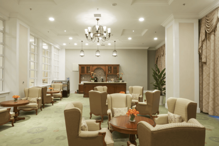 该老年公寓位于 570 公顷 "国家 5A 级" 翠湖湿地园区内,占地 60 亩,由 13 个精致古典的中式庭院组建而成。设有双人标间、大床房、单人间、大小套房、独栋别墅等多种房型,配备大型接待中心、娱乐活动室、卡拉 OK、歌舞厅、宴会厅、书画院、老年大学等功能型配套设施。内设医务室,医保可报销,是国家阿尔兹海默症的试点项目,开设中医养生特色服务体系,包括经络养生、运动养生、体质养生、膳食养生、娱乐养生等,为每位长辈私人定制不同的养生体系。