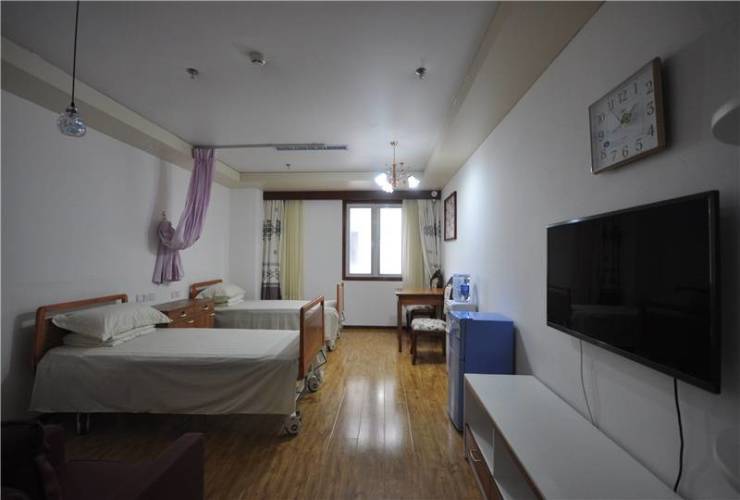 设施特色:单人间(20平米)、双人间(25平米)、三人间(35平米)、双人套间、豪华双人间(套间面积大约55平米左右);助浴间、棋牌室、书画室、影音室、阅览室、按摩室、餐厅、多功能厅。