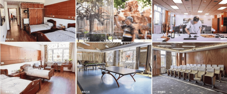 机构占地18000平米,建筑面积达21000平米,其中7000平米为园林区域,主体“回”字形建筑融合天人合一理念,古典与现代结合的设计传递“健康至上”初心,房间均按老年住宅标准打造,凸显以人为本、自然养生的理念。这里配套齐全,涵盖康复医疗、中医养生、心理咨询等多种保健项目,同时设有寿宴厅、中景庭院、阅览室等休闲餐饮设施,满足老人多元需求。
