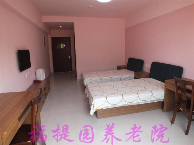 设施特色:福提园养老院占地三十余亩,规模适中、布局合理,毗邻万亩梨花园和念坛水库公园,周边绿树成荫、鸟语花香,空气清新,生态环境优越,是长者休闲养生的理想场所;院内设施完善,配备多功能医疗床、安全呼叫设备等专业护理设施,保障长者护理安全;设有一千多平米的室内活动区及大型舞台,可举办各类文娱活动、联欢会等,丰富长者精神文化生活;同时设有佛堂、阅览室、棋牌室、台球乒乓球室等多个功能区域,满足长者休闲娱乐、精神寄托等多样化需求;配备两千平米的地暖活动大厅,冬季温暖舒适,供长者日常活动、交流互动。