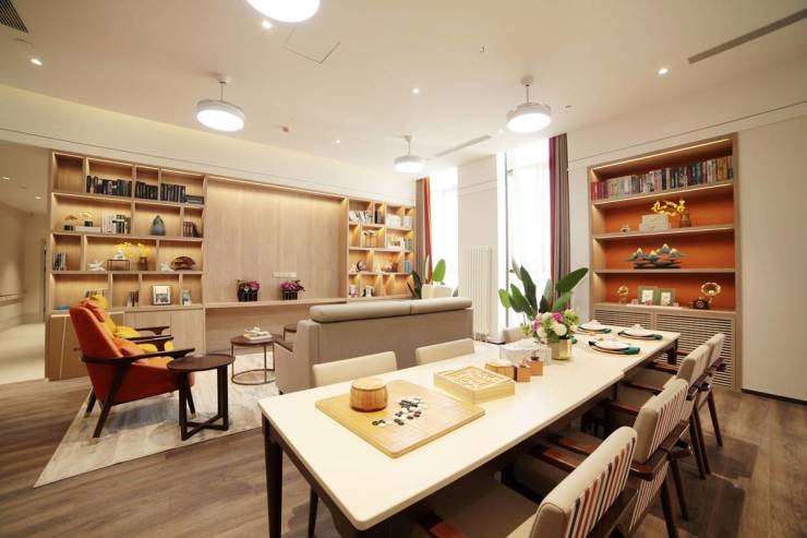 康语轩房山科豪老年公寓是康语轩第二家专业认知症照护机构,延续了认知症专业照护理念。机构采用单元式照护,由 4 个单元组成,每个单元像家一样有独立的卧室和共有的客厅、餐厅。建筑布局注重刺激五感,通过光线、色彩、灯光、芳香等方法调动老人的生活感知能力。设有花园、书吧、工房以及近 200㎡的康复区,多功能区占比超总面积 60%。医疗方面,社区卫生服务站距机构仅 50 米,可提供定期上门巡诊、优先诊疗等服务。