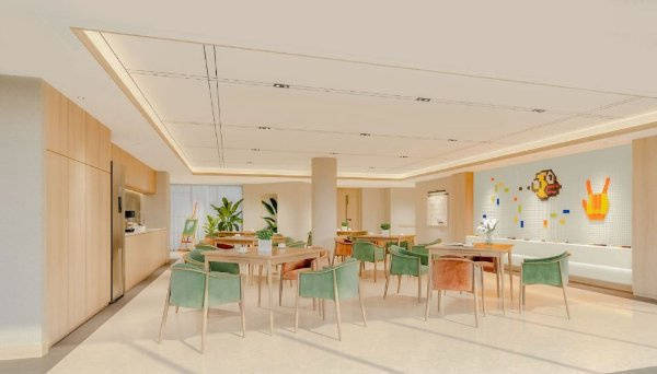 中心在空间设计上极具专业性。园区内打造五感花园,通过多感官刺激帮助老人进行康复训练;室内采用环形设计,能够有效缓解认知症长者因定向障碍引发的焦虑、游走、幻觉等行为与情绪问题,为长者营造安全、舒适的居住环境。