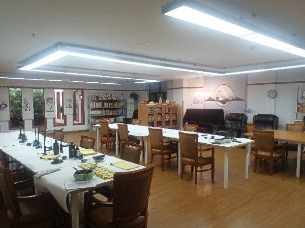 设施方面,中心配备全程无障碍通道及各类无障碍设施,辅以福园、荷花观赏池、门球场、休闲甬道和林木休闲区,为老人提供舒适的户外活动空间;室内设有中心活动室、餐厅、棋牌室、阅览室等丰富场所,房间内基本家具、家电、电话一应俱全,同时配备24小时智能安保应呼系统、紧急呼叫系统和床头供氧设备,卫生间也设有无障碍卫浴、洁身器及24小时热水淋浴,全方位保障老人生活安全与舒适。