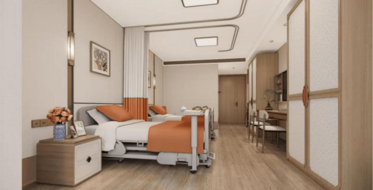 ▷ 设施亮点 | □ 独立庭院式规划,特色银杏客厅以全景设计引入室外景观,每层配置独立中央起居室,营造居家氛围;□ 融入130余项适老化标准,房间配齐护理床、智能监测设备、新风系统等全套设施;□ 休闲娱乐、公共服务及安全保障设施一应俱全,全方位守护起居安全与品质。