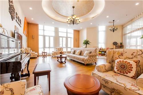 设施特色:房间按需配有独立卫生间、紧急呼叫系统、有线电视系统;集中空调系统、新风系统、地采暖系统、无障碍通道、安保监控系统等;书画室、阅览室、棋牌室、健身/舞蹈室、台球室、网吧、多功能厅、屋顶花园和院区活动场地。