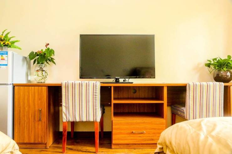 房间内配置齐全,集中供暖、冷暖空调与新风系统三重保障,告别潮湿闷热与寒冷,时刻保持空气清新、温度适宜;60寸LED平板电视、冰箱丰富日常起居,床头多功能一键呼叫系统24小时待命,防护型卫生间全方位规避跌倒风险,每一处细节都彰显人性化关怀。