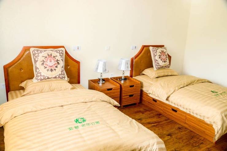 在居住环境上,中心尽显匠心。前身是幼儿园的空间基础,让房间宽敞明亮,通风采光极佳。室内装修全部采用环保无害材料,从墙面涂料到家具板材,均符合国家环保标准,从源头保障长者居住健康。同时,配备完善的适老化无障碍设备与专属电梯,行动不便的长者也能自由活动,每间居室均配备独立卫生间、专业护理床、电视、空调等生活设施,兼顾实用性与舒适性。