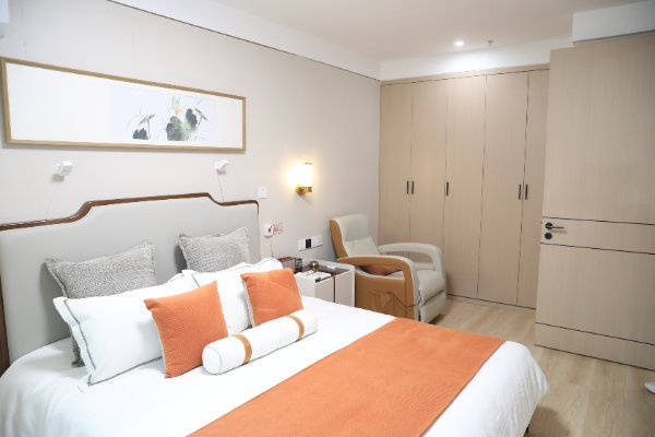 ▷ 机构总述:康语轩孙河老年公寓以认知症专业照料为核心,由日本资深设计师惣道和昭先生操刀设计,坐落于温榆河湿地公园内,将瑞典、日本先进介护经验与中国传统文化深度融合,打造兼具生态优势与人文温度的介护照料之家,112张床位充分保障居住私密性与舒适度。