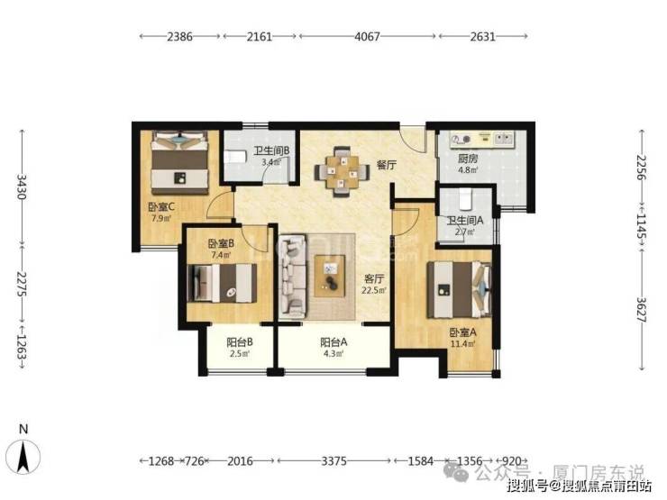 户型:三房两厅两卫