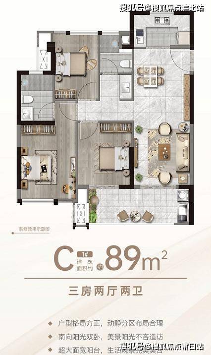 三房两厅两卫|建筑面积约:89㎡