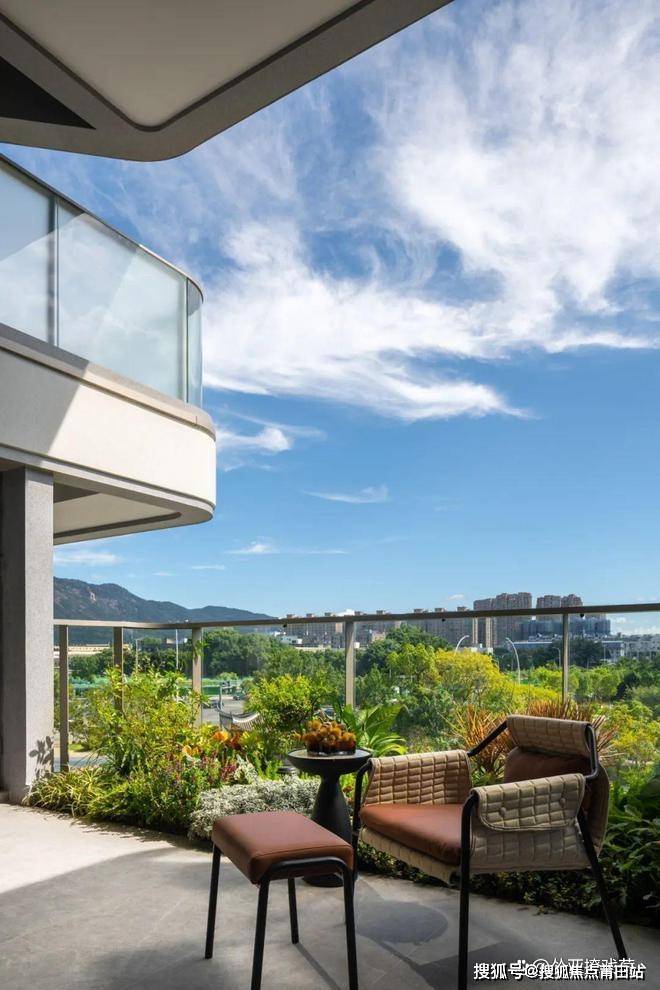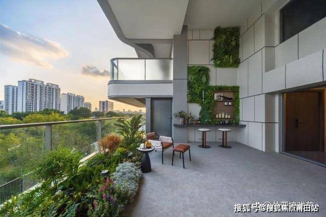 项目设计团队在设计之初出于对室内光照、建筑环境之间的关系的考量,采用“庭院转换”和“楼层转换”的设计,将露台设计为奇偶交错,使得所有的私家庭院都有两个自然层高,打造约6米的挑高天空院落,加大非传统住宅阳台,空中庭院坐拥270°景观视野,在带来更广阔视野的基础上,将花园融入生活,构筑建筑的生态内涵。