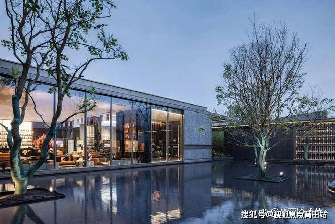院落之内,围绕着中心“湖面”,组织了三栋建筑,纯净的水岸玻璃展厅,以及两栋住宅样板间。