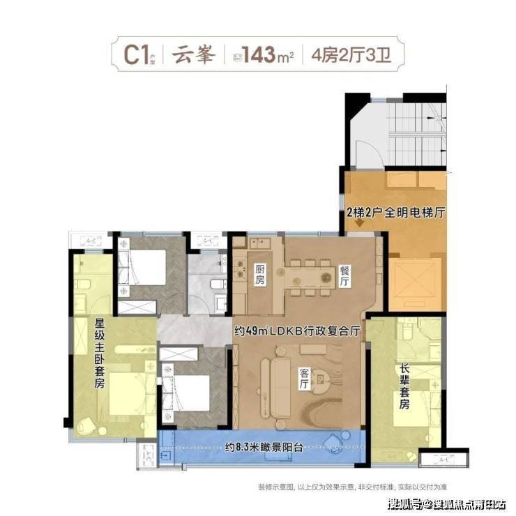 建面约143㎡ 纯粹T2大平层也极具尺度感 ,拥有约14.8米南向大面宽,全屋通透明亮,带来体验感、采光性、通风性及生活形态的尺度跃进。