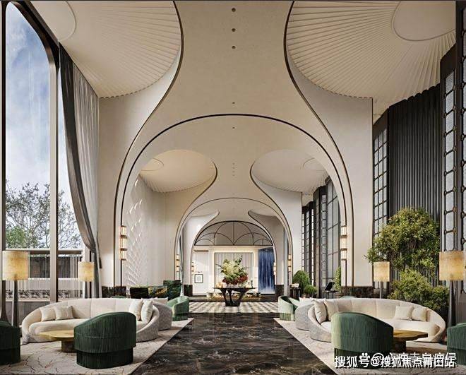 触手凤翎纹绿奢石镶嵌的门把手,一座约7米挑高的文冠穹顶大堂,铺展开了归家的尊贵序幕。
