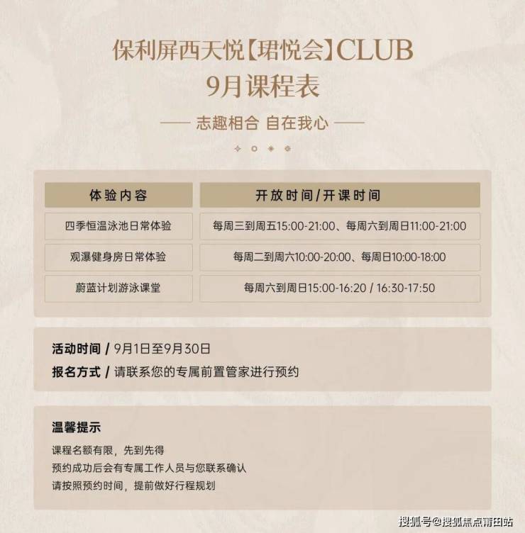 暑夏退却,秋色启新。西湖之畔,【珺悦会】CLUB秋映西湖奢享季9月献映。保利屏西天悦更将以【珺悦会】CLUB为平台,引入多方高阶资源,打造多元的圈层艺术活动。