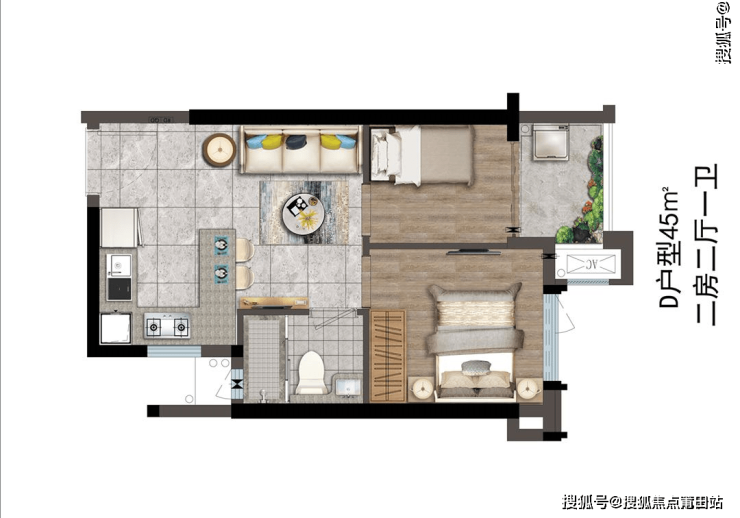 D户型 | 建筑面积约45㎡
