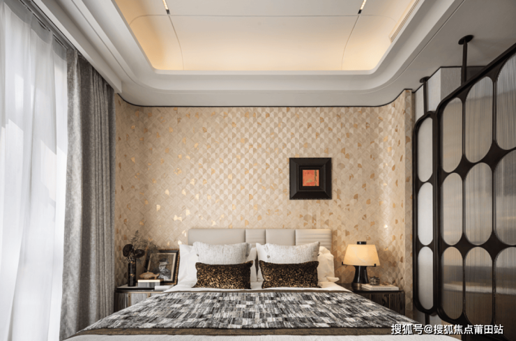 在本案的卧室空间内,有着酒店式私享主卧的氛围,高品质舒适家具,柔和的色彩辅以简洁的线条,整洁有序的陈列、收纳体系,予人以十足的放松感。