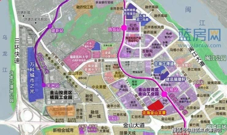 左海·金山文翠位于福州市仓山区建新北路与金达路交叉口东侧用地面积约40.15亩,邻近地铁5号线马榕站地铁口。