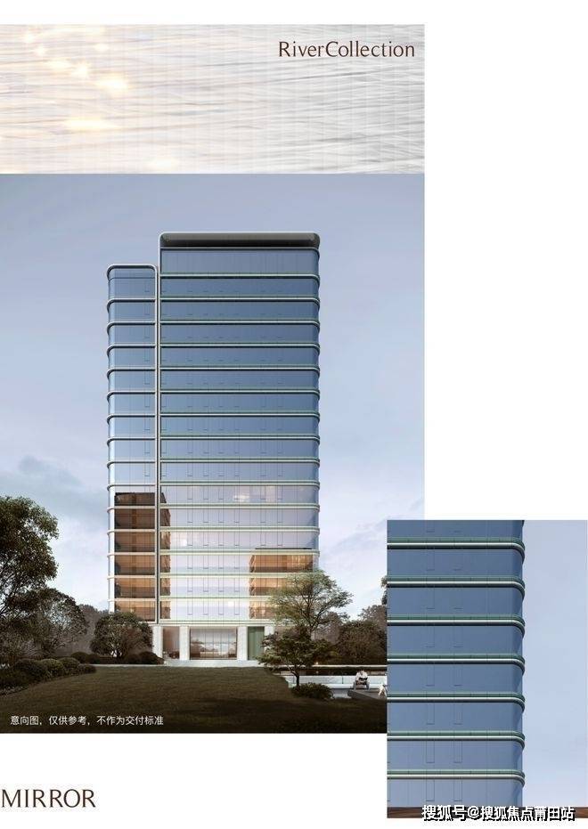 在芝澜月华,绿城引入全新“曲面屏”设计,以曲线柔化建筑边框,并在建筑表情融入灰绿色陶板线条。