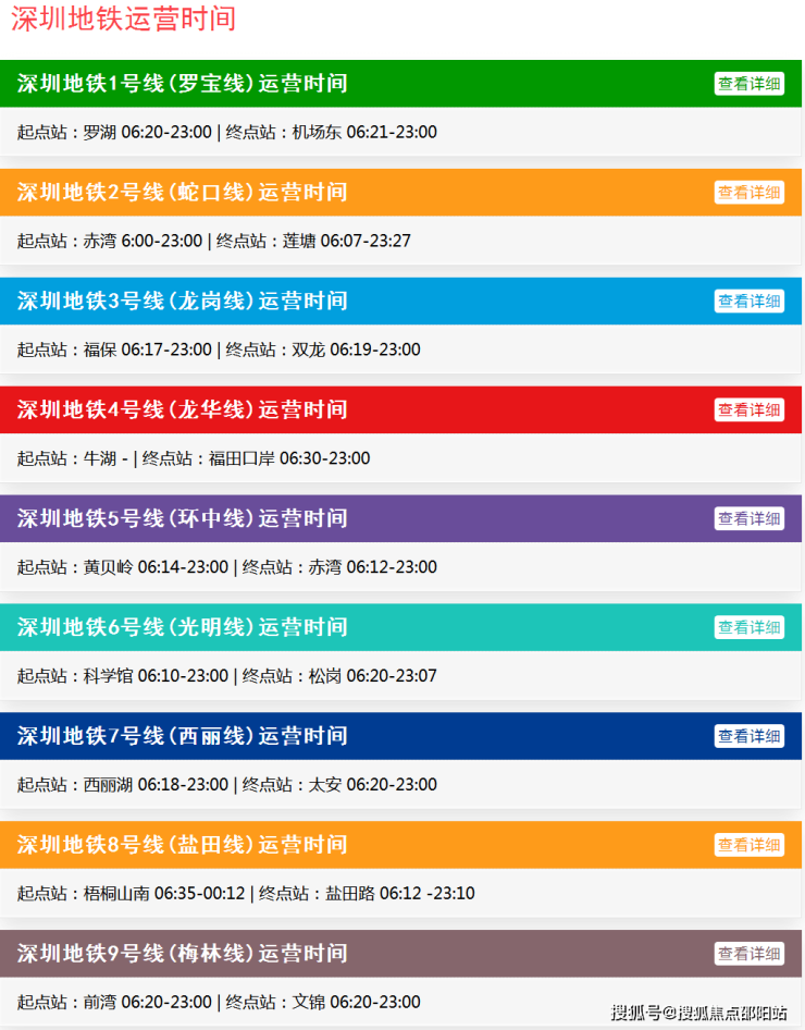 深圳地铁运营时间