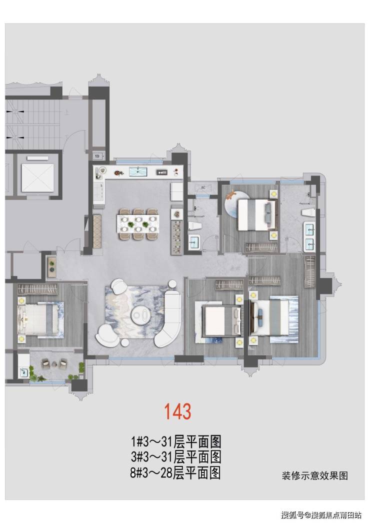 - 设计:戴昆团队操刀;品牌包括大金中央空调、百朗新风;入户门配梵蒂斯+凯迪仕智能锁;卫浴有劳芬智能马桶、高仪花洒;厨房含方太厨电、高仪龙头等一线产品;全屋智能面板集中控制