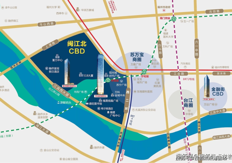 城央商圈:苏万宝+金融街万达+华润万象城+万达爱琴海商圈集群,百万平米总体量,满足高端商务办公需求并带动区域人口消费产能。