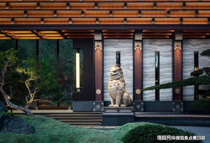 中式豪宅,讲究高门府第,气派大门必不可少。保利天瑞,匠造王府制式大门,大门坡顶屋檐远看有"重峦叠嶂"之感,配上门口点缀着宫廷才有的三出阙宫阙灯柱,造价百万一只的甪端瑞兽镇宅,这就是长沙顶豪的气魄和格局。
