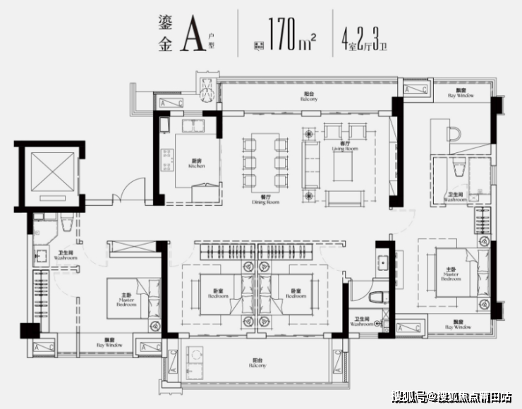 170㎡终极改善户型更是打开了富人的生活尺度。约17m面宽四开间朝南和约34㎡小家化主卧,这数据在同级别户型中算非常优异了。为了更大程度揽尽江河资源,搭配的是6.6米阳台南北双向,坐在客厅沙发或者餐桌都能看江!