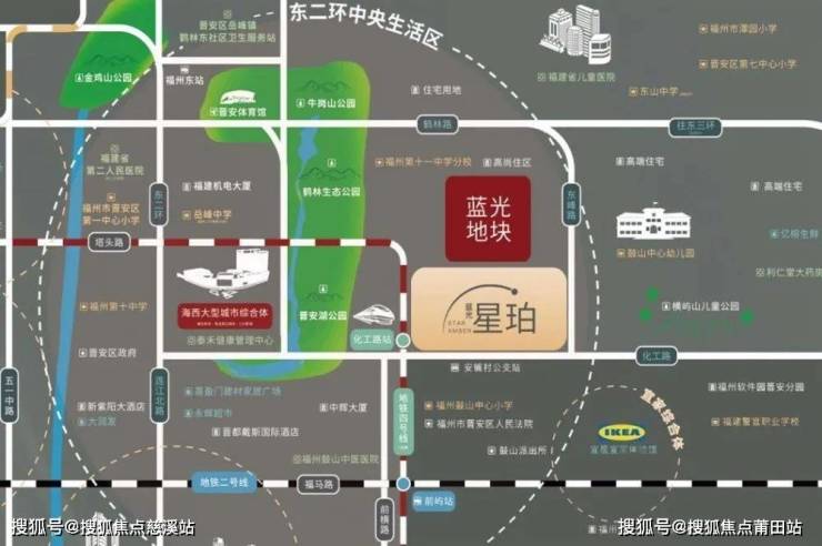 蓝光星珀位于 晋 安区前横北路与化工路交汇处(地铁 4号线化工路站口) , 占地面积58亩 ,建筑面积15.6万㎡ ,绿化率30% ,容积率3.0 ,共规划六栋高层住宅及两栋SOHO,规划1225套,安置房1124套,商品房101套。