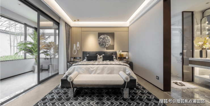 南向卧室,以大面宽和大面积玻璃为主角,将江南园林的自然风光框进室内,让居住空间通透宽敞。约40㎡总统式主卧套房,奢配精美梳妆台、太太的衣帽间及独立卫浴,完美动线串联,开启夫妻二人的浪漫私密生活。南向次卧套房,空间搭配卫浴及衣帽间,适合父母居住,阳光清风揽入怀,呵护长者健康起居。南向卧室可打造成儿童房,看书学习、发挥想象、创作绘画,给孩子提供自由成长空间。