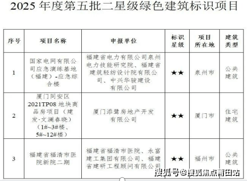 按照《绿色建筑标识管理办法》(建标规〔2021〕1号)和《福建省绿色建筑标识管理实施细则》(闽建〔2022〕7号)有关规定,我厅组织开展了2025年度第五批二星级绿色建筑标识项目认定工作。