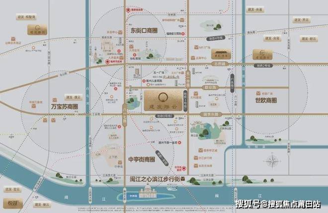“建发·瑞云”北面2公里五一广场,东面300米福州南公园,西面500米茶亭公园,南面1.6公里闽江之心、上下杭。