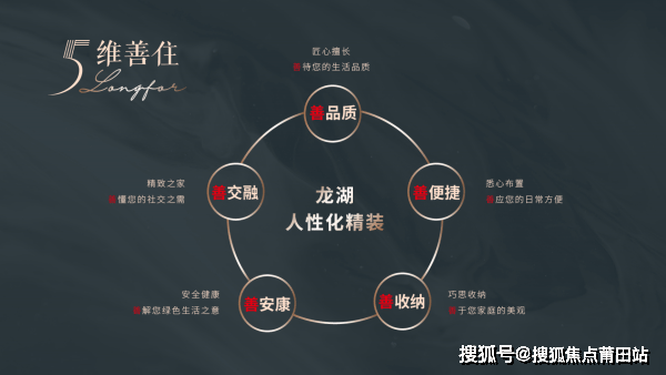 【臻装价值】五维善住精装体系,重新定义时代大宅龙湖特有五维善住精装系统,将现代生活美学与匠工品质有机结合,筑成兼具高端审美、实用主义、精工哲学和人性化的精工筑品。5大体系全品牌优选、13项轻松整理功能、多出一间屋子的收纳系统、5大安康系统,更有3大定制陶板、四大柜体、三大电器赠送。