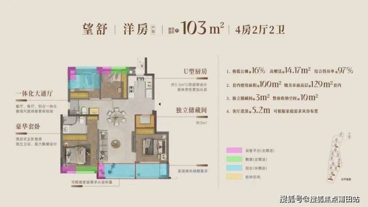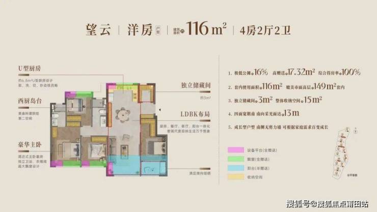 14栋7-11层洋房,仅380套住宅,主打103-143㎡四房户型,全盘两梯两户。
