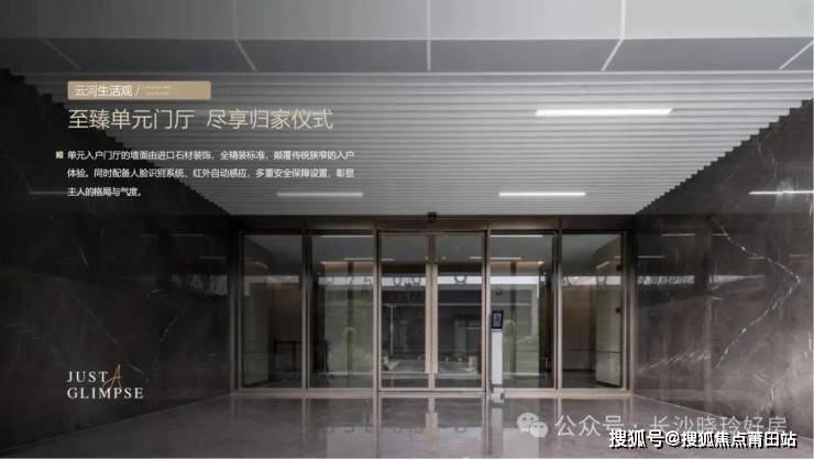 单元入户门厅的墙面由进口石材装饰,全精装标准,颠覆传统狭窄的入户体验。同时配备人脸识别系统、红外自动感应,多重安全保障设置,彰显主人的格局与气度。