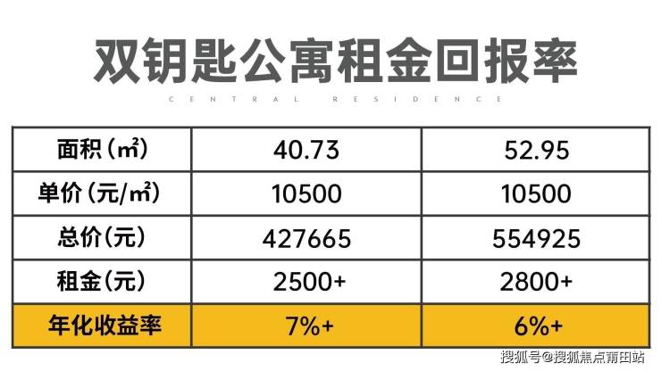 中央府双钥题公寓月租金2500元/月+,预计年化收益达6%+